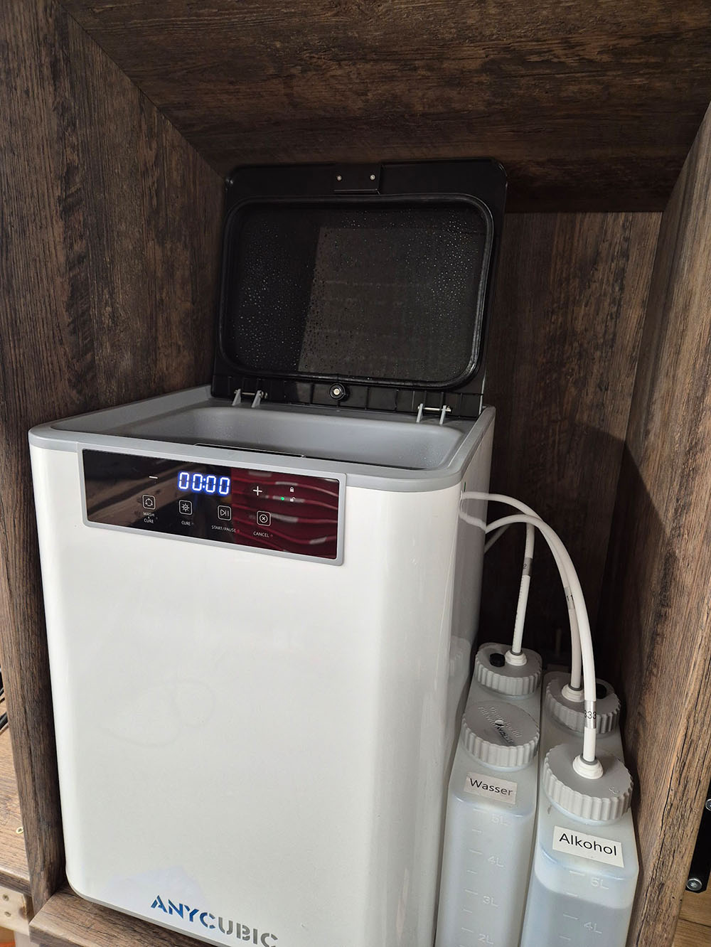 In dieser Waschmaschine wird auch das Resin mittels UV Licht ausgehärtet. Alles in allem eine runde Sache