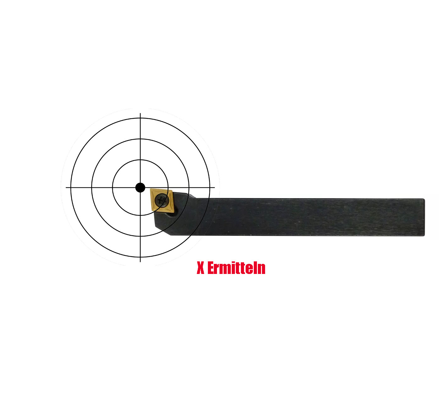 Fahren Sie das Werkzeug mit der X Achse an das Fadenkreuz und drücken Sie Werkzeug X Nullen.