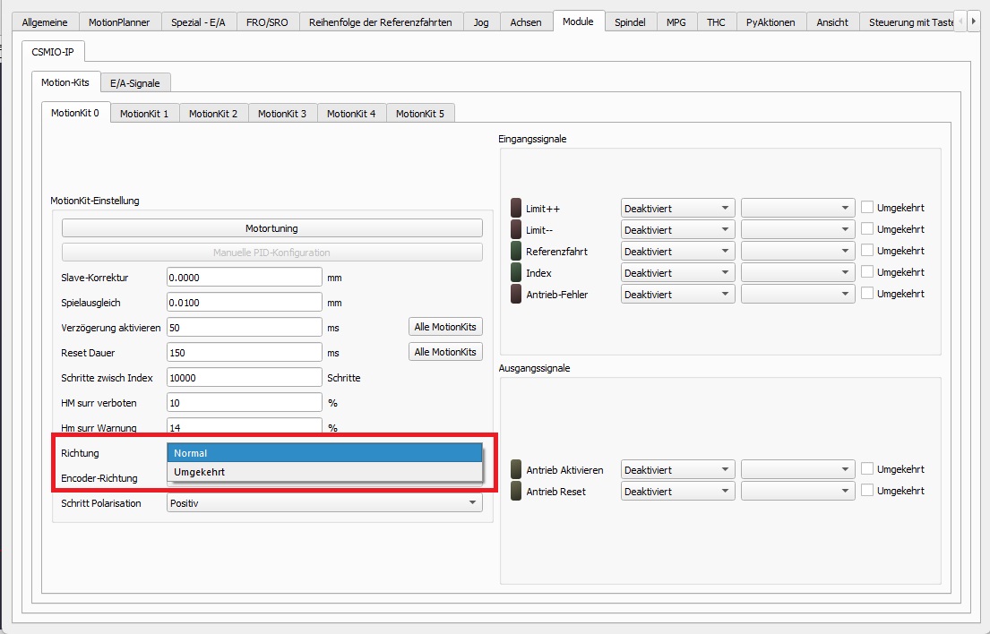 Wer eine IP-A einsetzt kann hier die Richtung der Encoder Signale wechseln oder Umkehren.