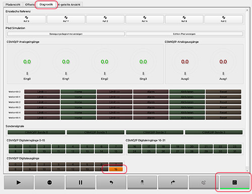 Wenn Sie in der Diagnose auf die LED von Ausgang 15 klicken wird der Ausgang geschaltet.