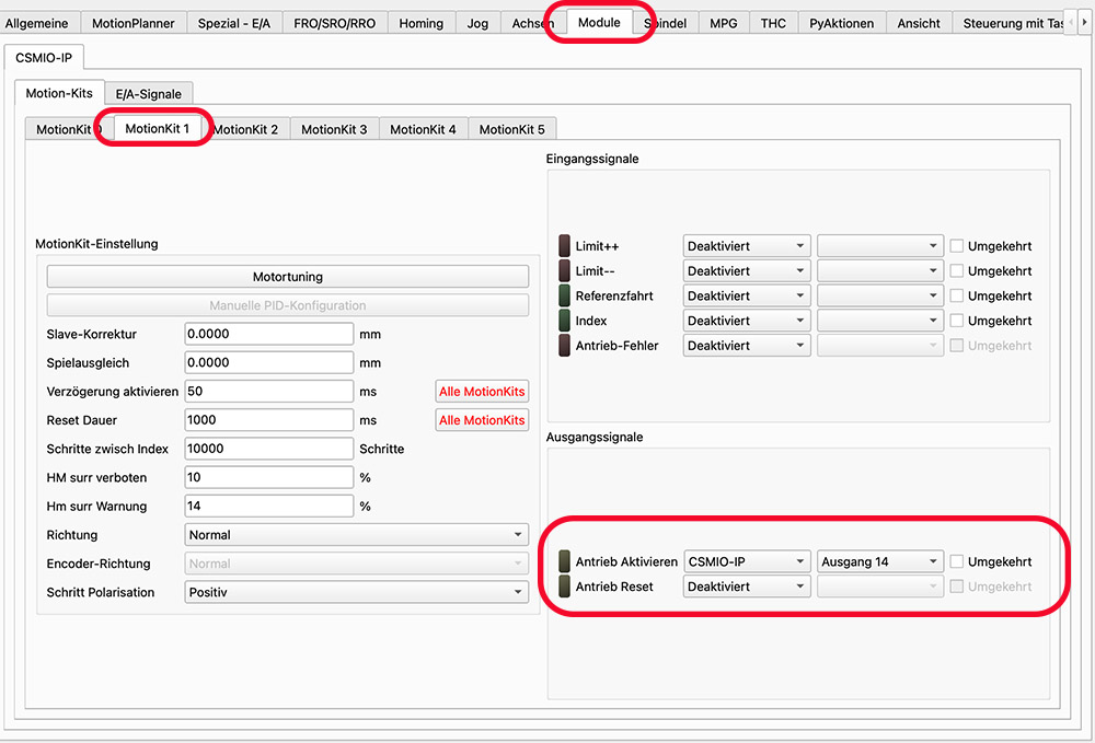 Weisen Sie dem Ausgang 6 die Funktion M8 zu.