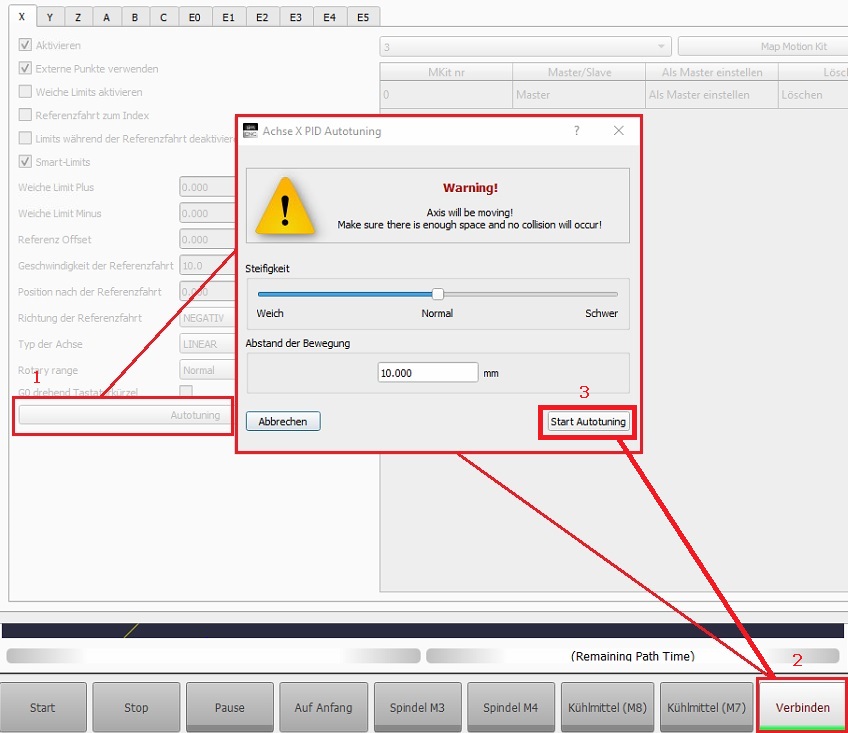 Klicken Sie auf Autotuning - es öffnet sich das Fenster - schieben Sie dieses soweit wie möglich Richtung Button Verbinden - klicken Sie dann unten auf Verbinden.