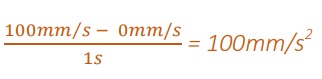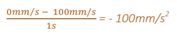 Um zu veranschaulichen, worum es bei der Beschleunigung geht, nutzen wir die Geschwindigkeitskurve der Achse, die bis zu einer Geschwindigkeit von 100 mm/s beschleunigt und danach gebremst wurde. Bei der Geschwindigkeitssteigerung und Bremsung betrug die Beschleunigung genau 100 mm/s2 (Absolutwert).