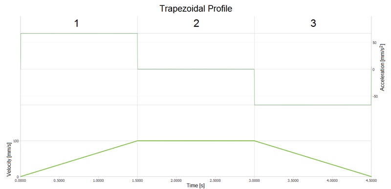 Die Trapezprofil-Geschwindigkeitskurve ist in nur 3 Bereiche eingeteilt: