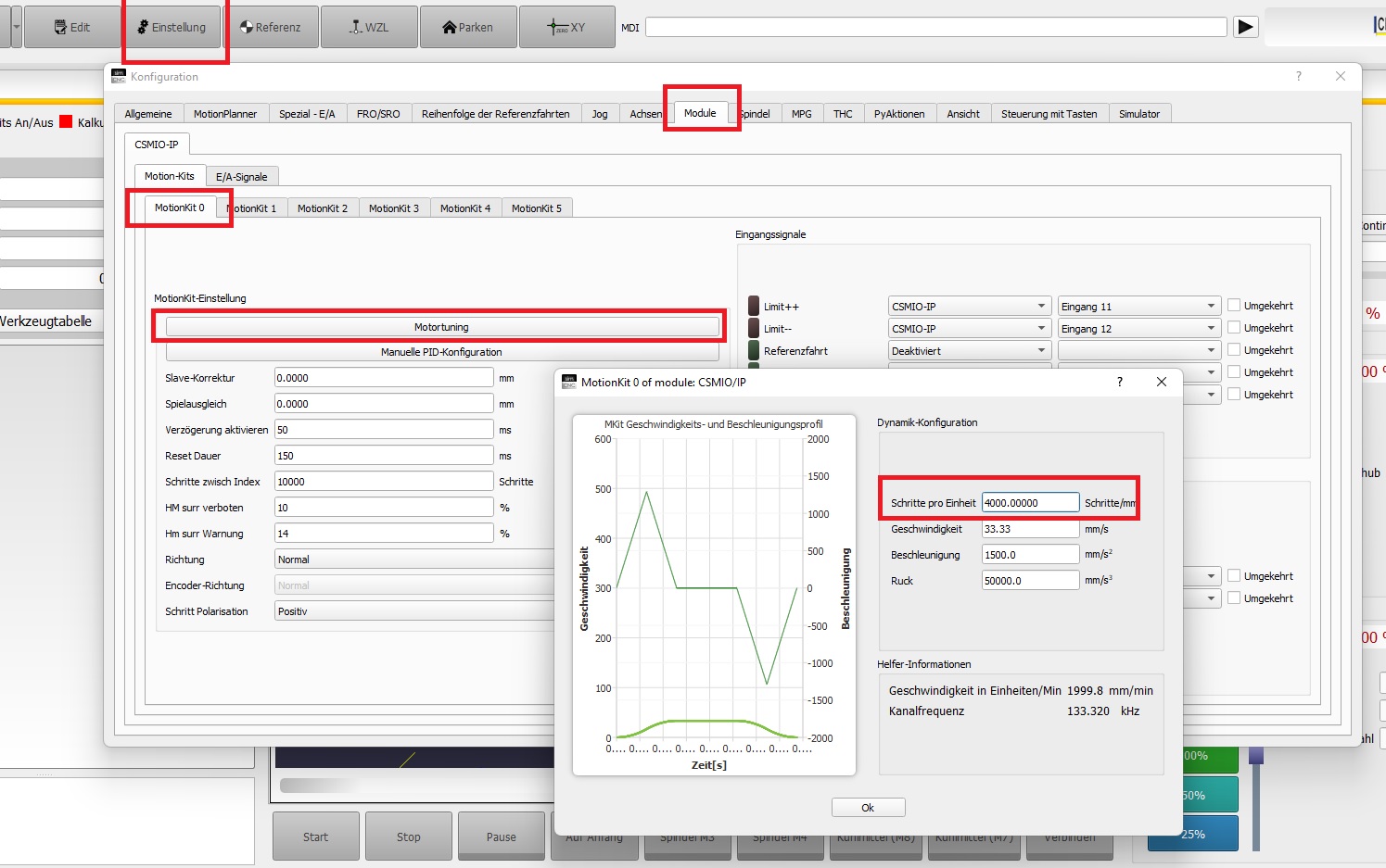 Nach den Einstellen der Signale in Software ist die Auflösung das wichtigste, stellen Sie zuerst die Schritte / Impulse richtig ein. Dann können Sie die Geschwindigkeiten / Rampen einstellen