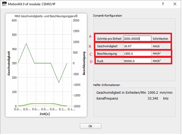 Das Feld Step´s ist eigentlich falsch benannt. Bei der IP-A sollte das Feld nicht Step´s/sec. sondern Signale per mm heißen. Denn hier werden die Feedbacksignale eingetragen.