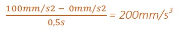 Mit diesem Parameter wird festgelegt, um wie viele Einheiten pro Sekunde2 (z.B. mm/s2 ) die Achse ihre Geschwindigkeit innerhalb einer Sekunde erhöht bzw. senkt. Es wird in Einheiten pro Sekunde3 (mm/s3 , Zoll/s3 , Grad/s2 ) angegeben. Zur Berechnung des Spurtes wird folgende Formel verwendet: