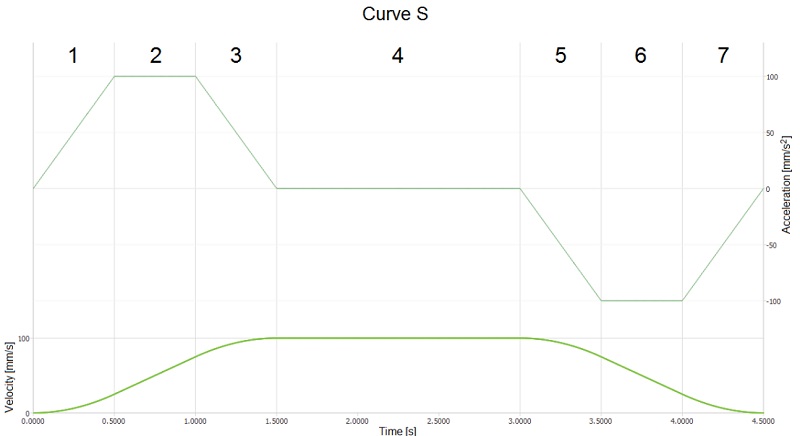 Die S-Profil-Geschwindigkeitskurve ist in 7 Bereiche eingeteilt: