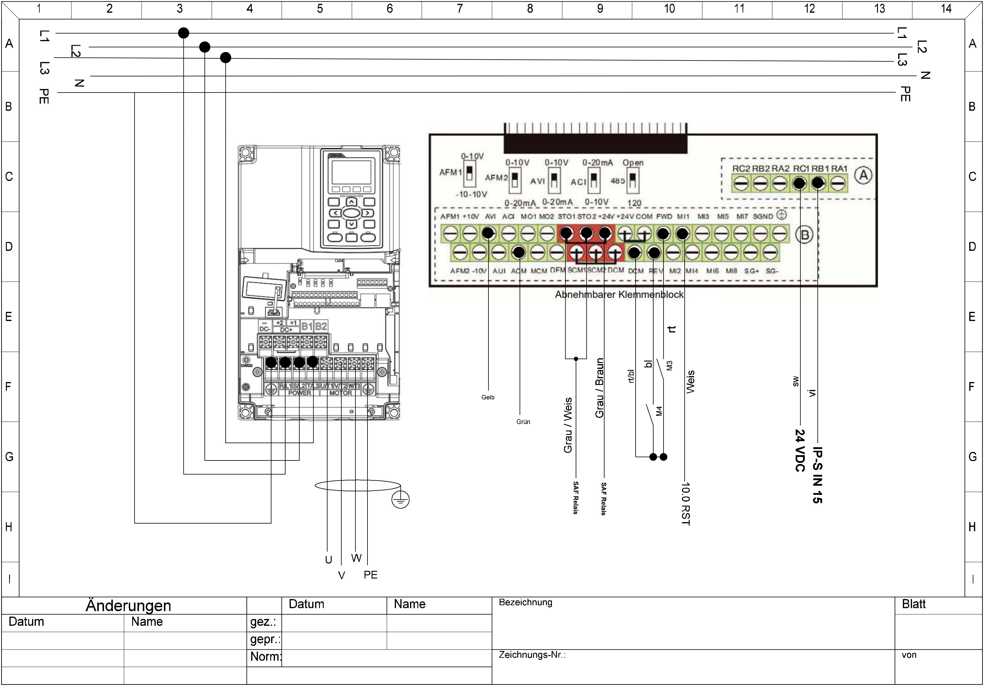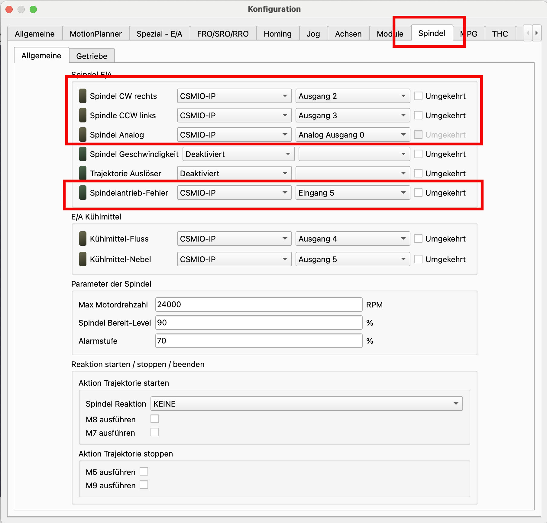 - RB1 an einen digitalen Eingang Ihrer Wahl. Dieser wird dann für den Spindelalarm zugewiesen
