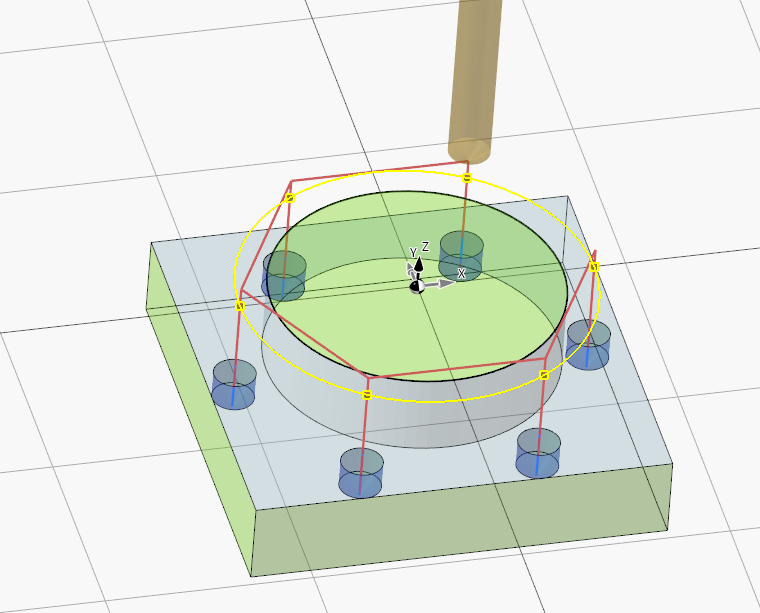 In der Simulation sehen Sie wie die Fase nun aussen gefräst wird