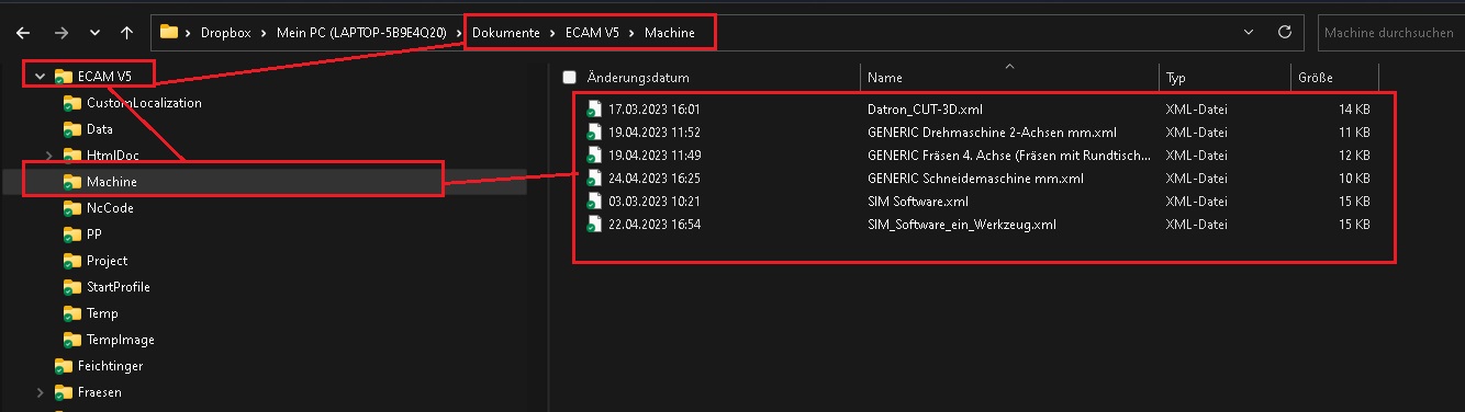 Öffnen Sie den Ordner ECAMV5, Sie sehen dann weitere Ordner, öffnen Sie den Ordner "Machine" dieser Ordner enthält alle installierten Postprozessoren.