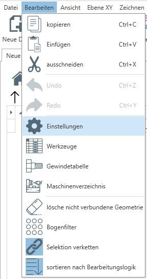 Wer seine Bearbeitungsrichtung ändern möchte klickt auf das Werkzeug, es öffnet sich die Werkzeugtabelle.
