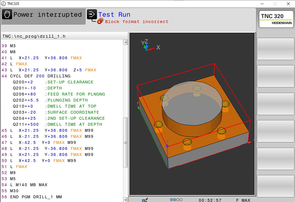 N50G53 G0 Z-5 (WECHSELPOSITION) Bewegt die Z Achse auf Maschinenkoordinaten Z-5 aus