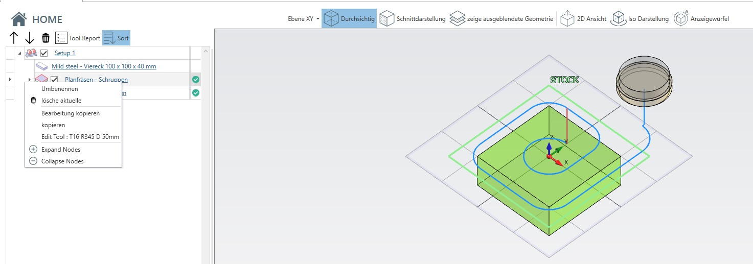 Hier eine kurze Erklärung zum Verständnis des Workflows zum Konvertieren des Werkzeugwegs in einen DIN Code-