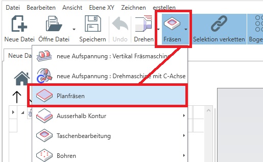 Dann erstellen Sie die Bearbeitung "Planfräsen"