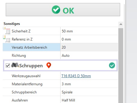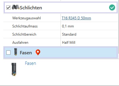 Hier ist dann noch möglich ein Schlichtaufmass zu lassen. Wer hier ein Aufmass einträgt reduziert die Schruppbewegung um diese Strecke.