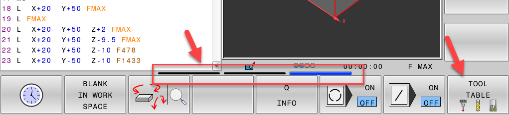 In diesem Menü ist auch die Werkzeugtabelle verfügbar.
