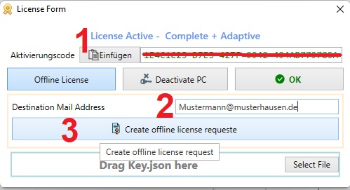 2. Klicken Sie nun auf [Offline License], geben Sie Ihre E-Mail-Adresse ein und