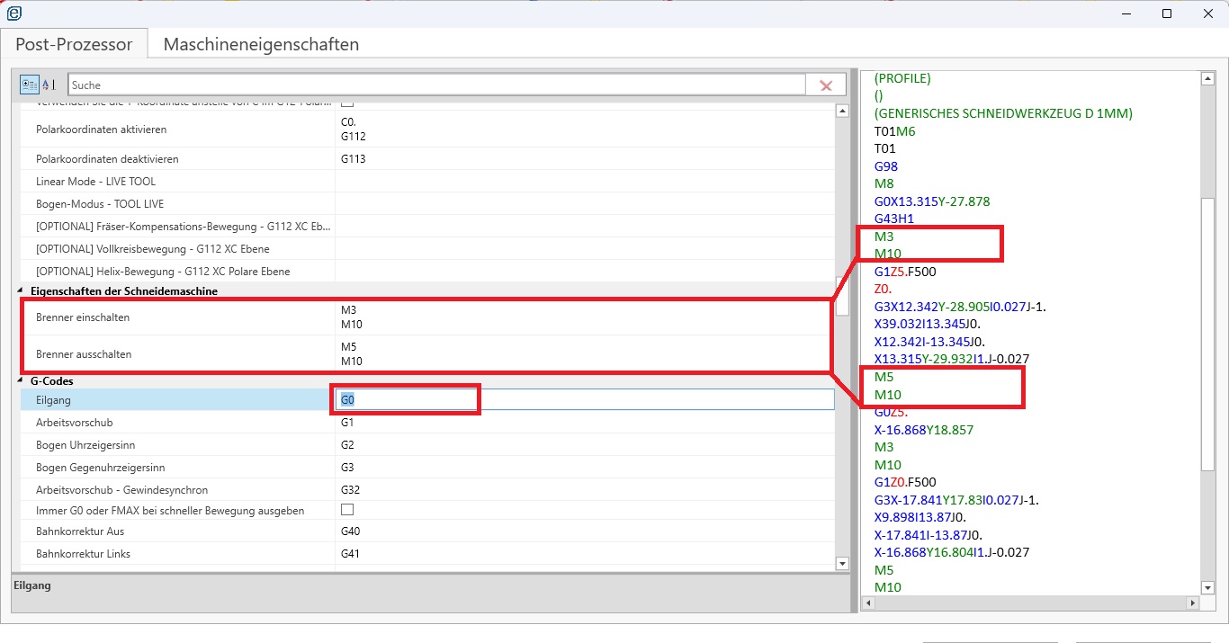 Aus der Kombination der einzelnen Vorlage und des Tag-Wörterbuchs wird der Ausgabe-G-Code erstellt.