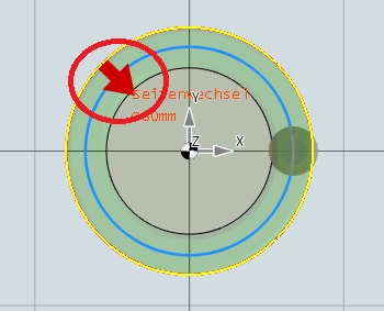 Versatz Arbeitsbereich: Hier kann ein Wert eingegeben werden, was die Bewegung vergrößert also über das Rohteilmaß hinaus geht.
