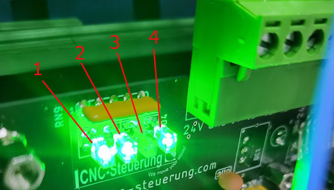 In diesem Beispiel leuchten 1 - 2 -4 also muss Werkzeug 2 eingewechselt sein.
