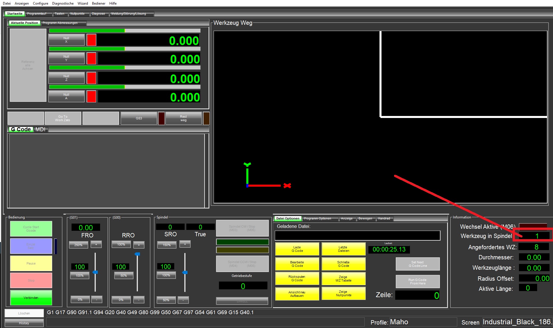 Sie müssen dem Werkzeug unter DIA noch den Durchmesser eintragen.