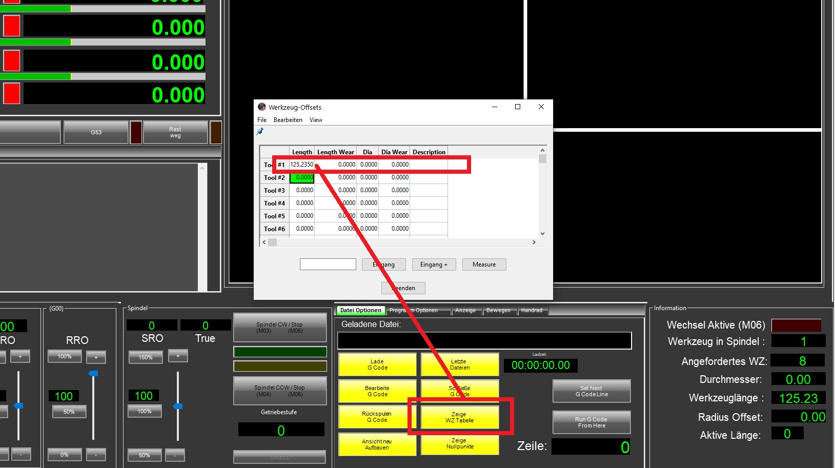 Nach der Vermessung wird die Werkzeuglänge im jeweiligen Werkzeug eingetragen. Öffnen Sie die Werkzeugtabelle um die Angaben zu ergänzen