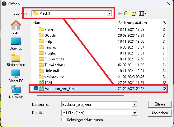 Es öffnet sich ein Fenster, wählen Sie im Hauptverzeichnis der Mach3 die Screendatei und