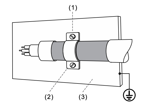 Also muss die Schirmung der Leitung sauber aufliegen. Der Schirm wird großflächig mit einer Schirmklemme (wie unten gezeigt) aufgelegt.