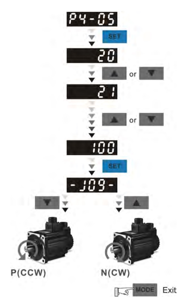 (4) Drücken Sie im JOG-Modus die AUF- oder AB-Taste, um den Servomotor einzuschalten