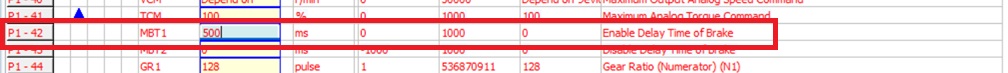 P1-42 auf 500 stellen = Nur für Bremse * (1000 = 1 Sekunde)