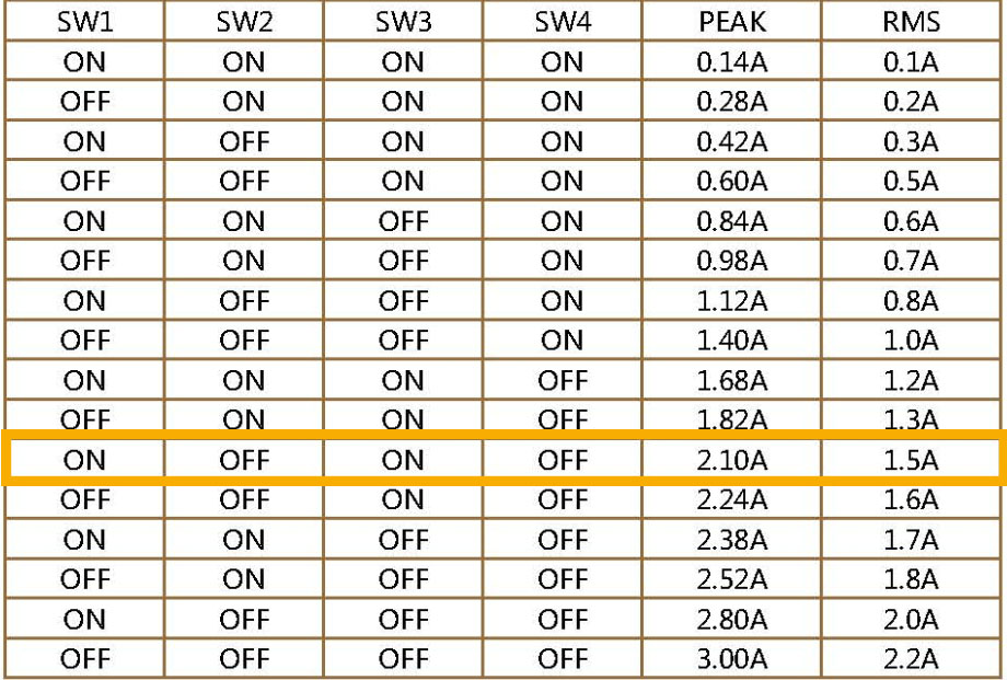 Schauen Sie auf Ihren Schrittmotor und wählen Sie dann die möglichen Stromeinstellung der Endstufe.