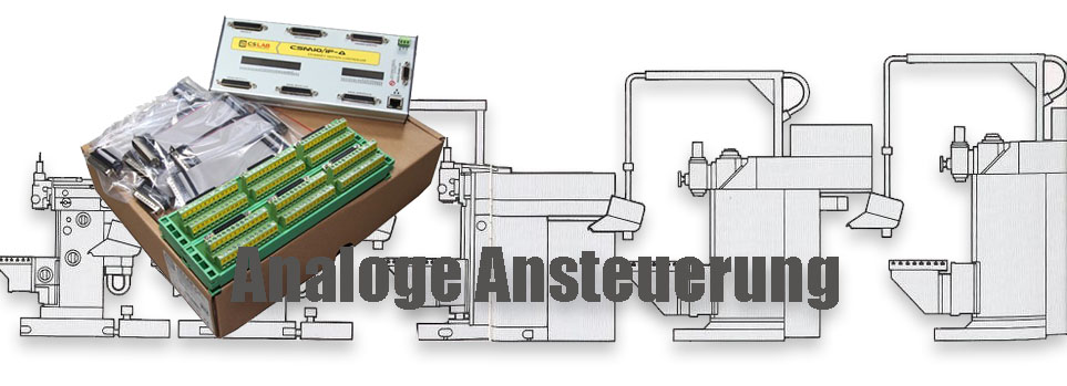 Analoge Eingänge 0-10V dienen u.a. zum Anschließen von Potentiometern zur Korrektur der Spindeldrehzahl und Achsenvorschubgeschwindigkeit.